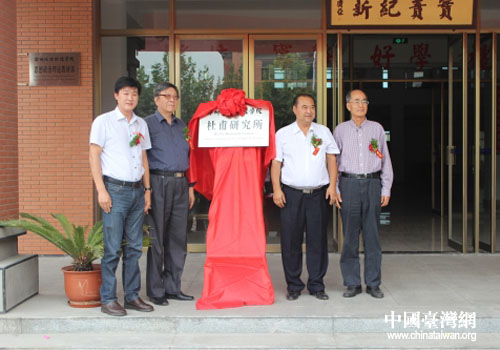 成功學院院領導及嘉賓為杜甫研究所成立揭牌。(圖片來源:鄭州市臺辦)
