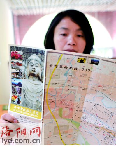 臺灣同胞翻看洛陽旅游交通圖 記者 陳占舉 攝