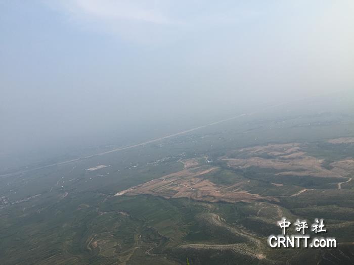 從山頂望下,可見南水北調(diào)中線工程橫穿華北平原而過。(中評社)