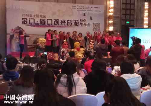 推介會(huì)現(xiàn)場(chǎng),由金門民俗表演——電音三太子為整場(chǎng)推介會(huì)開啟序幕。來自金門和廈門旅游局的負(fù)責(zé)人向參會(huì)的旅行商全面推介金門、廈門的旅游資源、產(chǎn)品、線路、發(fā)展政策等。同時(shí),用播放宣傳片、發(fā)放宣傳資料、業(yè)務(wù)洽談等形式,生動(dòng)形象的展示各個(gè)景點(diǎn)的獨(dú)到之處。