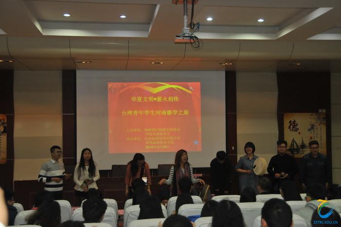 鄭州旅游職業學院副院長徐永清對臺灣修學團的到來表示歡迎。他介紹了河南的基本情況及鄭州旅游職業學院的發展現狀。他指出,河南是中華文明和中華民族的重要發源地,豫臺兩地同根同源,應不斷加強往來,增進情誼,共促兩岸和平發展。