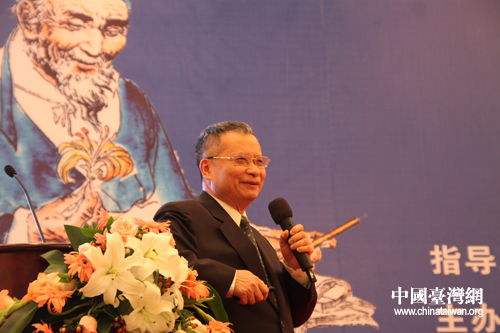 臺灣中醫(yī)聯(lián)合會理事長林昭庚就臺灣中醫(yī)藥教育情況作了深入分析。(中國臺灣網(wǎng) 楊麗 攝)