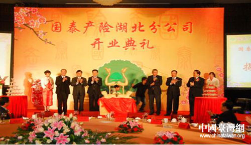 國泰產險湖北分公司開業典禮,副省長趙斌出席揭牌儀式。(湖北省臺辦潘力 攝)
