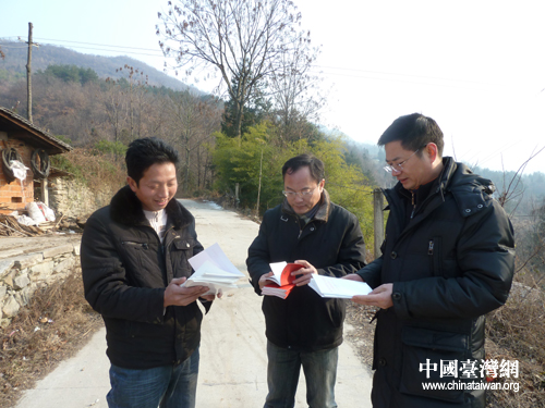 中國臺灣網(wǎng)1月10日襄陽消息 日前,湖北省襄陽市臺辦購買《十八大報告》和《黨章》各40本,贈送給谷城縣天子溝、石門、將軍山、土橋溝四個駐點聯(lián)系村,襄陽市臺辦副主任趙文忠每到一處分別與村干部學(xué)習(xí)黨的十八大報告中關(guān)于新農(nóng)村建設(shè)和加快農(nóng)民增收步伐的內(nèi)容,并與村干部共同學(xué)習(xí)新黨章。(中國臺灣網(wǎng)襄陽市臺辦通訊員 崔有理)