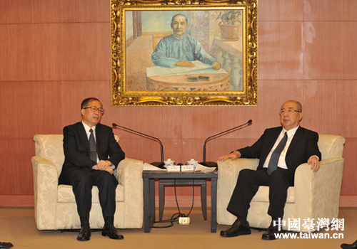 湖北省委書記李鴻忠在中國國民黨黨部會見國民黨榮譽主席吳伯雄先生。(圖片來源:湖北省臺辦)
