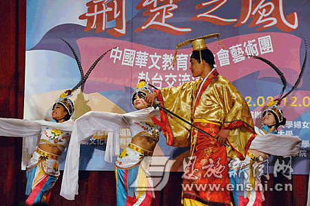楚韻漢風悠長,土苗風情醉人,臺灣刮起荊楚風!扒G楚之風”赴臺文化交流演出活動由中國華文教育基金會主辦,由湖北省民族歌舞團24名演職員和武漢音樂學院的5名師生組成的藝術團于11月29日飛赴臺灣,先后在臺北、臺南、桃園、新北等地進行了系列文化考察和交流活動,并到臺灣元智大學、僑光科技大學、東吳大學、臺灣戲曲學院等大專院校進行了文藝巡演,具有濃郁民族特色和湖北地方特色歌舞、民族器樂表演贏得所到大學師生和臺灣民眾的普遍贊揚,場場演出精彩紛呈,文化交流收獲頗豐。