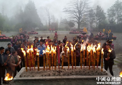 兩岸同胞在神農架神農壇共同祭拜炎帝神農氏。
