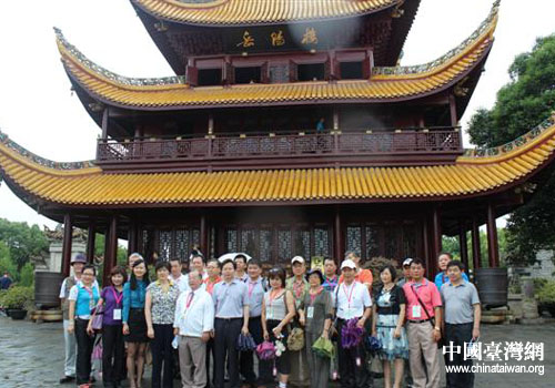 高雄市新聞參訪團(tuán)與湖南省臺(tái)辦、岳陽市陪同領(lǐng)導(dǎo)在岳陽樓前合影。(圖片來源:岳陽市臺(tái)辦)
