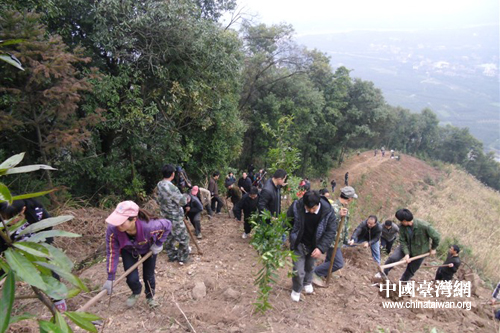 中國臺灣網3月4日江永消息 草長鶯飛,春回大地。2月27日,湖南江永縣臺辦在江永縣委常委、縣委統戰部部長、副縣長的帶領下,組織百余人來到黃甲嶺石嶺村,開展了一場別開生面的義務植樹活動。當天與當地林農一起共載種天竺桂、杜英、香樟等綠化大苗132株,修建防火隔離林帶2000米,載種防火苗木6000株,杉苗1.2萬株,種植面積達150多畝,為建設“綠色江永”獻上一片“同心林”。(中國臺灣網江永縣臺辦通訊員 何麗)