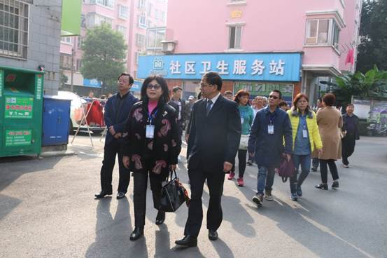 秋日暖陽中的體育東路社區安靜整潔,舒適祥和。參訪團一行在常德市政協副主席陳位明以及市臺辦、市民政局和武陵區相關領導的陪同下,饒有興致地參觀了社區服務大廳、衛生服務中心、社區警務室等設施和殘障人士居家服務中心、田工愛心屋、老年活動中心等志愿服務機構,并與武陵區基層社區負責人進行了座談交流。