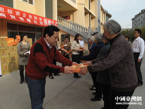 中國臺灣網11月17日南京消息 日前,在南京市臺辦、溧水縣臺辦組織下,南京市臺灣同胞投資企業協會、南京一品極商貿有限公司向溧水縣永陽鎮、石湫鎮分別捐贈了價值6萬元和2萬元的臺灣特色食品。