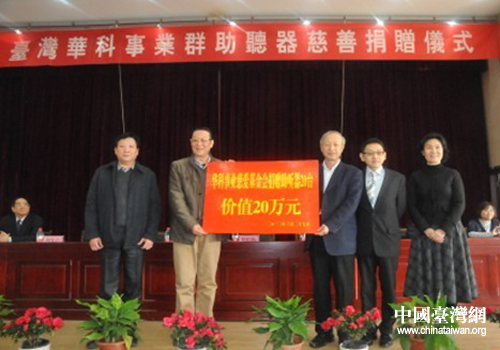 中國臺灣網(wǎng)3月28日徐州消息 3月27日,臺灣華科事業(yè)群董事長焦佑衡、江蘇省政協(xié)港澳臺僑委副主任陳堯以及華科事業(yè)慈愛基金會工作人員一行5人來到徐州市特殊教育中心,向這里的聽障兒童捐助了價值二十萬元的助聽器。