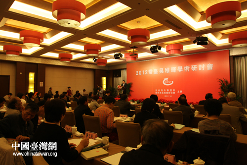 中國臺灣網10月24日常州消息 日前,2012常臺吳稚暉學術研討會在江蘇常州雪堰成功舉辦,中國國民黨榮譽主席吳伯雄為研討會題詞并發來賀電。江蘇省政協副主席范燕青、省海外聯誼會常務副會長周和平、常州市委副書記戴源等省市有關部門領導,全球粥會世界總會長、臺灣吳稚暉學術研究中心主任,海峽兩岸和諧文化交流協進會會長陸炳文、吳稚暉后人吳湘城、吳湘岱等兩岸專家學者出席了研討會。