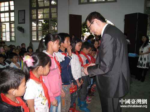 中國臺灣網5月31日撫州消息 5月30日,六一兒童節來臨之際,臺灣亞煜國際集團總經理、江西省贛臺交流服務中心理事長蔡孟勛先生,在江西省臺辦副主任簡立明、市臺辦主任廖燕、黎川縣副縣長何明的陪同下來到黎川縣宏村鎮中心小學,為20名貧困學生送來書包、文具、運動服及一萬多元助學金。
