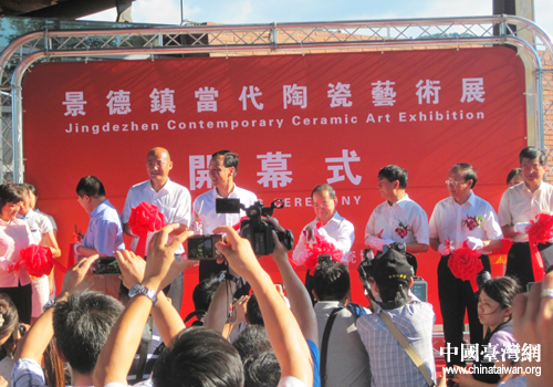 中國臺灣網8月22日新北消息 8月20日下午,景德鎮(zhèn)當代陶瓷藝術展在臺灣新北市鶯歌鎮(zhèn)舉行,江西省省長鹿心社、臺灣新北市市長朱立倫等人為藝術展剪彩,并參觀了鶯歌陶瓷博物館。(中國臺灣網、江西臺辦聯(lián)合報道)