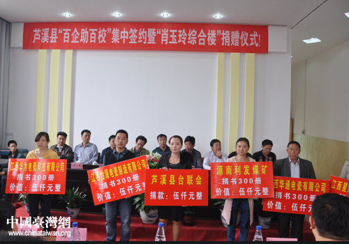 中國臺灣網11月5日蘆溪消息 日前,在蘆溪縣“百企助百校”集中簽約暨“肖玉玲綜合樓”捐贈儀式上,蘆溪縣臺聯(lián)會慷慨解難為長豐鄉(xiāng)學校捐資5000元,用于改善學校辦學條件。(中國臺灣網蘆溪縣臺辦通訊員 童麗)