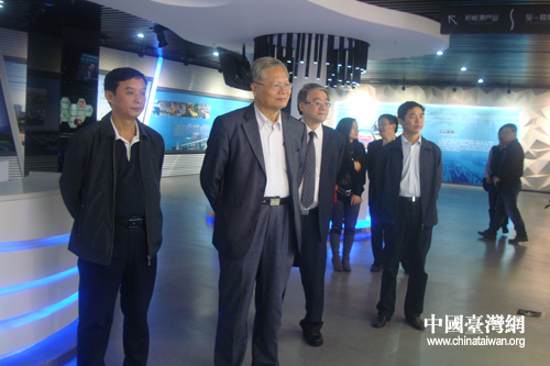 臺灣電電公會秘書長陳文義先生一行在市規劃展覽館參觀考察。(謝忠平 攝)