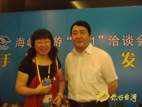 新疆旅游局副局長(zhǎng)伊那木乃斯?fàn)柖〗邮苡浾哐牌疾稍L(你好臺(tái)灣網(wǎng) 圖)