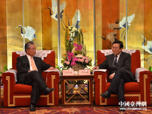 中國臺灣網4月14日成都消息 日前,以海峽兩岸經貿文化交流協會會長、財團法人海峽交流基金會副董事長、臺灣金仁寶集團董事長許勝雄先生為團長的海峽兩岸經貿文化交流協會參訪團一行參訪了成都。4月13日,中共四川省委常委、成都市委書記李春城,成都市長葛紅林在成都會見了參訪團全體成員。雙方就蓉臺電子信息產業發展的最新情況、仁寶成都項目建設進展情況等廣泛交換了意見。