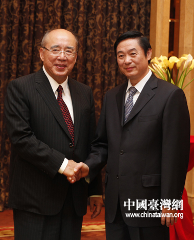 5月8日下午,中共四川省委書記劉奇葆在成都會見中國國民黨榮譽主席吳伯雄和參加第七屆兩岸經貿文化論壇的部分臺灣代表。 (中國臺灣網 田云鵬 攝)
