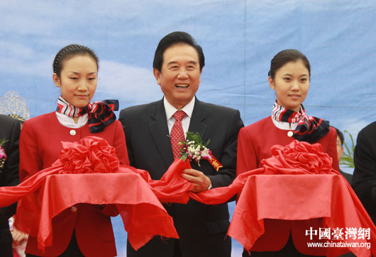 全國政協常委、港澳臺僑委員會主任、海峽兩岸關系協會會長陳云林為通航儀式剪彩。(中國臺灣網 劉海偉 攝)