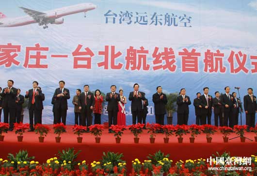 海峽交流協會副會長王富卿指出,臺灣遠東航空公司把大陸航線的首飛儀式選擇在石家莊,體現了臺灣工商企業界的朋友,對河北人民的真誠給予熱情的回饋,對河北的建設成就給予熱切關注,對河北的發展未來充滿信心。他說,石家莊臺北航線的開通使冀臺“一日生活圈”成為現實,翻開了河北與臺灣深化交流合作的一頁新篇。