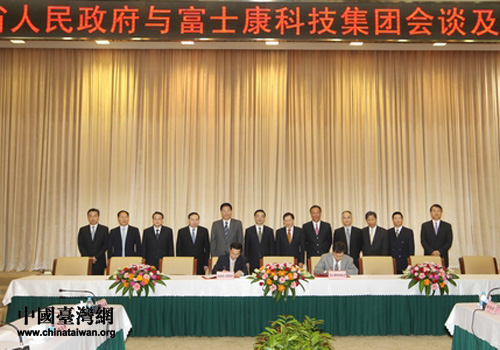 湖南省人民政府與富士康科技集團簽約。(圖片來源:湖南省臺辦)