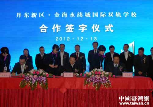 中國臺灣網6月28日丹東消息 2012年12月13日正式簽約、2013春天完成重新綠化、5月下旬硬件改造裝修工程動工、6月3日開始面向國內外招收小學、初中、高中一年級學生。半年時間,丹臺兩地企業合作創辦的丹東新區金海永續城國際雙軌學校,連續創造了多個“加速度”,讓人充分感受到金海永續城國際雙軌學校的熱情與期待。