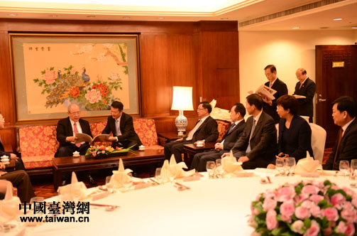 中國臺(tái)灣網(wǎng)11月27日消息 日前,應(yīng)臺(tái)灣“新竹市農(nóng)會(huì)”和正陽古佛捐贈(zèng)者葉景成先生的邀請(qǐng),駐馬店市委常委、統(tǒng)戰(zhàn)部長趙文峰率駐馬店市現(xiàn)代農(nóng)業(yè)考察團(tuán)赴臺(tái)進(jìn)行現(xiàn)代農(nóng)業(yè)考察。其間,中國國民黨榮譽(yù)主席吳伯雄親切會(huì)見了考察團(tuán)一行。(中國臺(tái)灣網(wǎng)、駐馬店市臺(tái)辦、駐馬店市臺(tái)聯(lián)聯(lián)合報(bào)道)