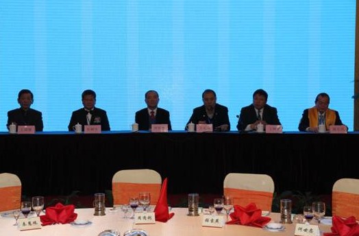 淄博市臺協會換屆聯誼活動現場。全國臺企聯副會長王克璋先生(右三)致辭,全國臺企聯常務副會長、秘書長何世忠出席活動。