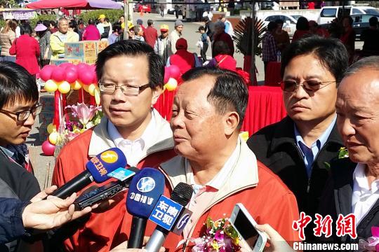 12月6日,臺灣第1艘原裝全太陽能發電游艇在風光明媚的苗栗縣明德水庫首航。圖為苗栗縣劉政鴻接受大陸媒體采訪。 觀光業者提供 攝