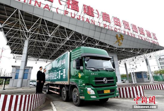 資料圖:11月3日,在福州出口加工區監管中心,福州跨境電子商務首票保稅第一單通過海關監管后開出福州馬尾出口加工區。當日,福州跨境電子商務公共服務平臺在福州出口加工區監管中心啟動。中新社記者 王東明 攝