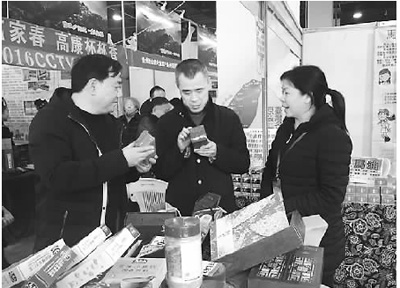 杭州市臺(tái)辦工作人員在臺(tái)企展區(qū)查看臺(tái)灣產(chǎn)品。(杭州市臺(tái)辦供圖)
