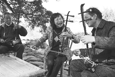 12月6日,在南靖縣書洋鎮(zhèn)云水謠,參加尋根謁祖的金門張女士情不自禁地與當(dāng)?shù)卣谛蓍e的老人一起彈唱起閩南小調(diào)。當(dāng)日,33位來自臺(tái)灣的簡(jiǎn)氏、張氏宗親在南靖書洋鄉(xiāng)尋根謁祖。記者 常剛 攝