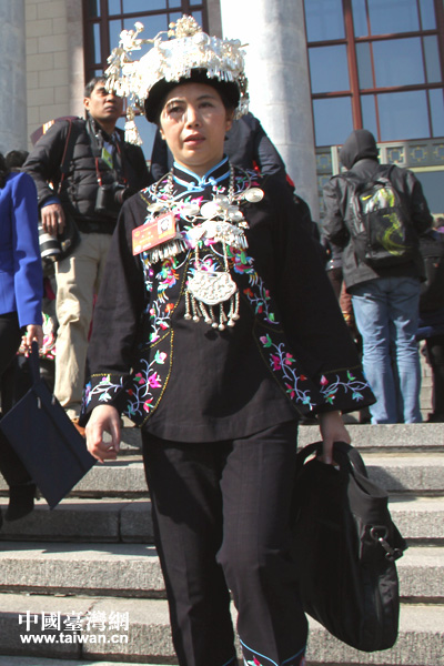 來(lái)自貴州團(tuán)的布依族代表王菁女士。(中國(guó)臺(tái)灣網(wǎng)記者 高斯斯 攝)