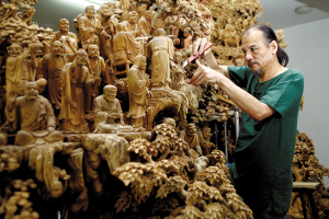 所以現(xiàn)在他已經(jīng)開始考慮少賺錢甚至是不賺錢,而多做一些能傳世的東西。當(dāng)年他與兩百人花了六年時間完成日本無量壽寺的雕刻就給了他很大的啟發(fā)。“接下來我想做一些比如‘大好河山’之類的題材,把每個省最有代表性的風(fēng)景名勝刻下來。還有農(nóng)歷新年前會出一本書,詳盡地介紹如何分辨木材如何使用刻刀、如何磨刀,分享我三十多年來的經(jīng)驗。”
