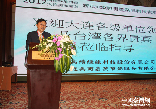 中國臺灣網5月25日大連消息 5月24日,由臺灣高績綠能科技公司、大連美商嘉英節能公司主辦的“2012大連LED新型照明暨深層科技發表會”在大連市舉辦。大連市委常委、副市長曹愛華出席了發表會,臺灣桃園市副市長呂朝福,大連市臺辦等相關部門領導及媒體參加了發表會。