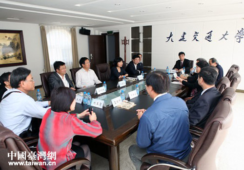 中國臺灣網10月8日大連消息 日前,臺灣“中國土木水利工程學會”理事長陳希舜、理事林陵三等一行38人來大連參加“2013年海峽兩岸土木工程及軌道交通學術交流研討會”活動,大連交大黨委書記劉曉英會見了參會的臺灣客人。(中國臺灣網大連市臺辦通訊員 方永樂)