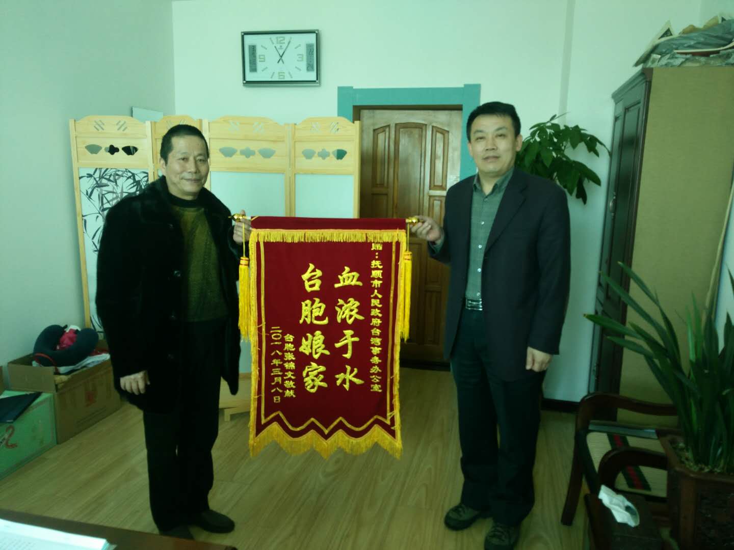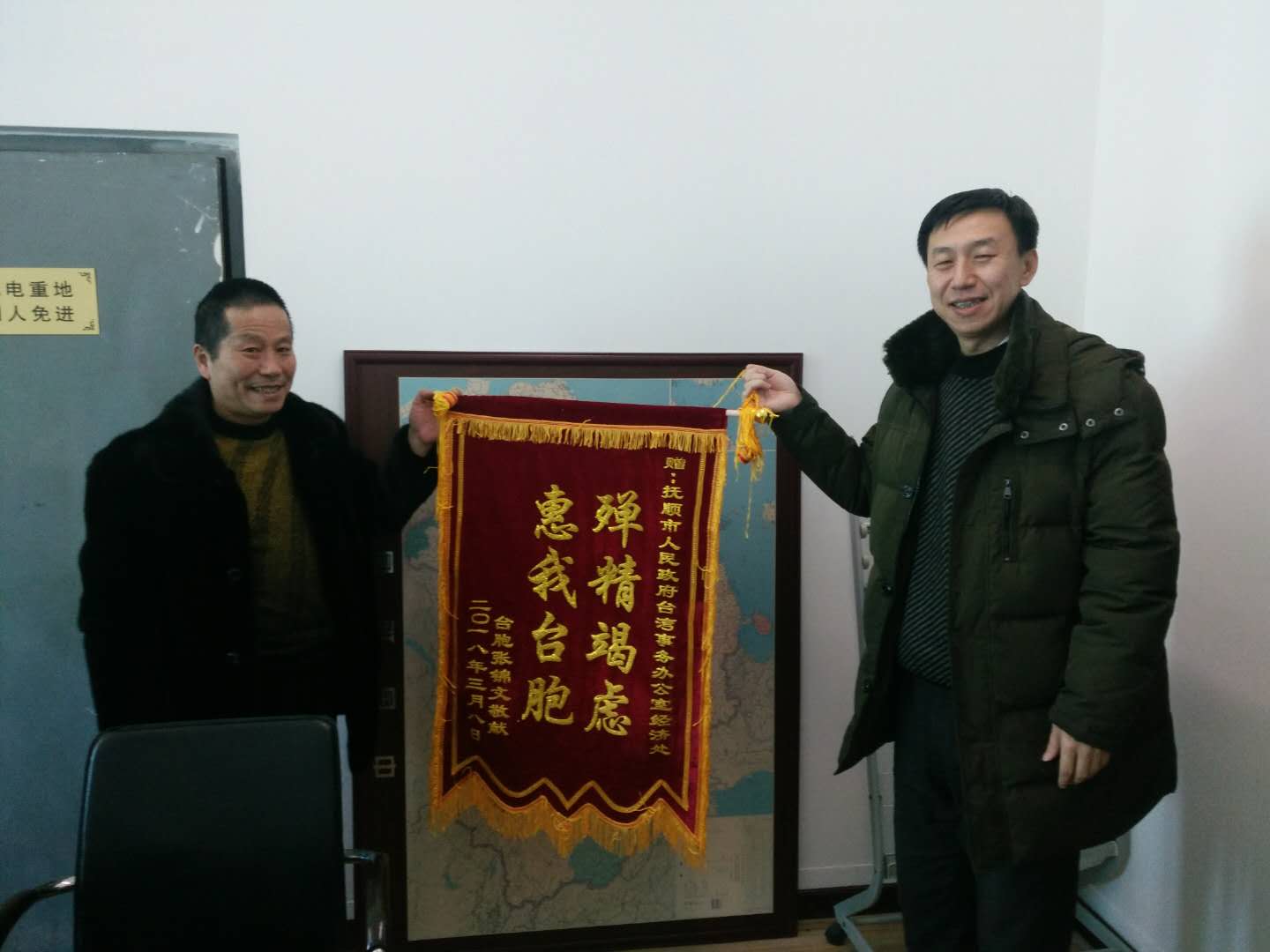 中國(guó)臺(tái)灣網(wǎng)3月14日撫順訊 近日,臺(tái)商張錦文懷著激動(dòng)的心情來(lái)到了撫順市臺(tái)辦,為撫順市臺(tái)辦贈(zèng)送了兩面錦旗,以表誠(chéng)摯的謝意。