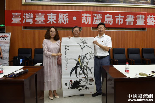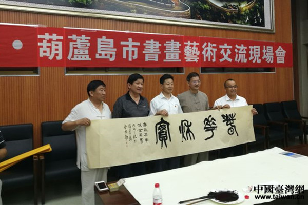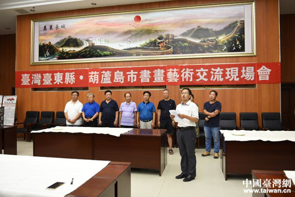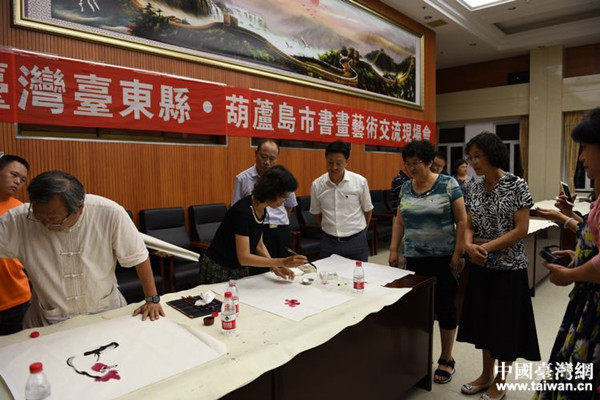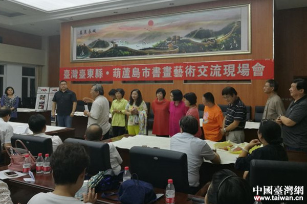 2018年8月14日,遼寧省葫蘆島市臺辦、市文聯、市臺聯、市民革聯合舉辦了“臺灣臺東縣·葫蘆島市書畫藝術交流現場會”。(中國臺灣網遼寧臺辦通訊員 周大偉)
