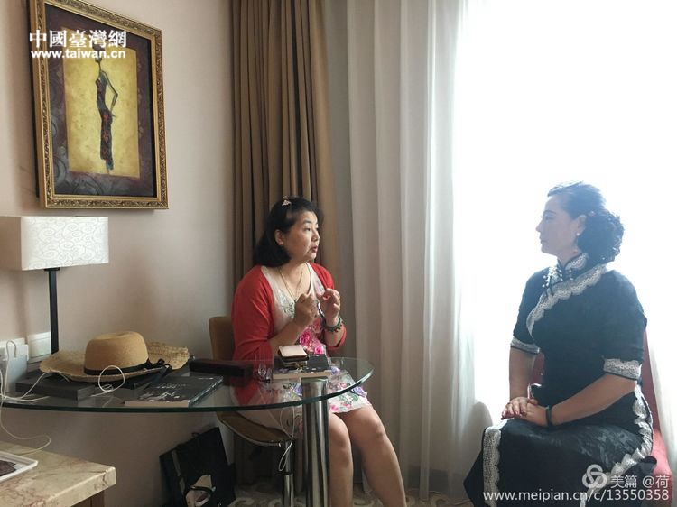 撫順荷之韻文化傳媒有限公司總經(jīng)理何麗鳴女士(右)與臺(tái)灣朋友交流兩岸婦女旗袍文化藝術(shù)美學(xué)(圖片來(lái)源:遼寧省臺(tái)辦)