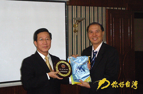 王克璋會(huì)長(zhǎng)與姜志俊博士互贈(zèng)禮品(你好臺(tái)灣網(wǎng) 圖)