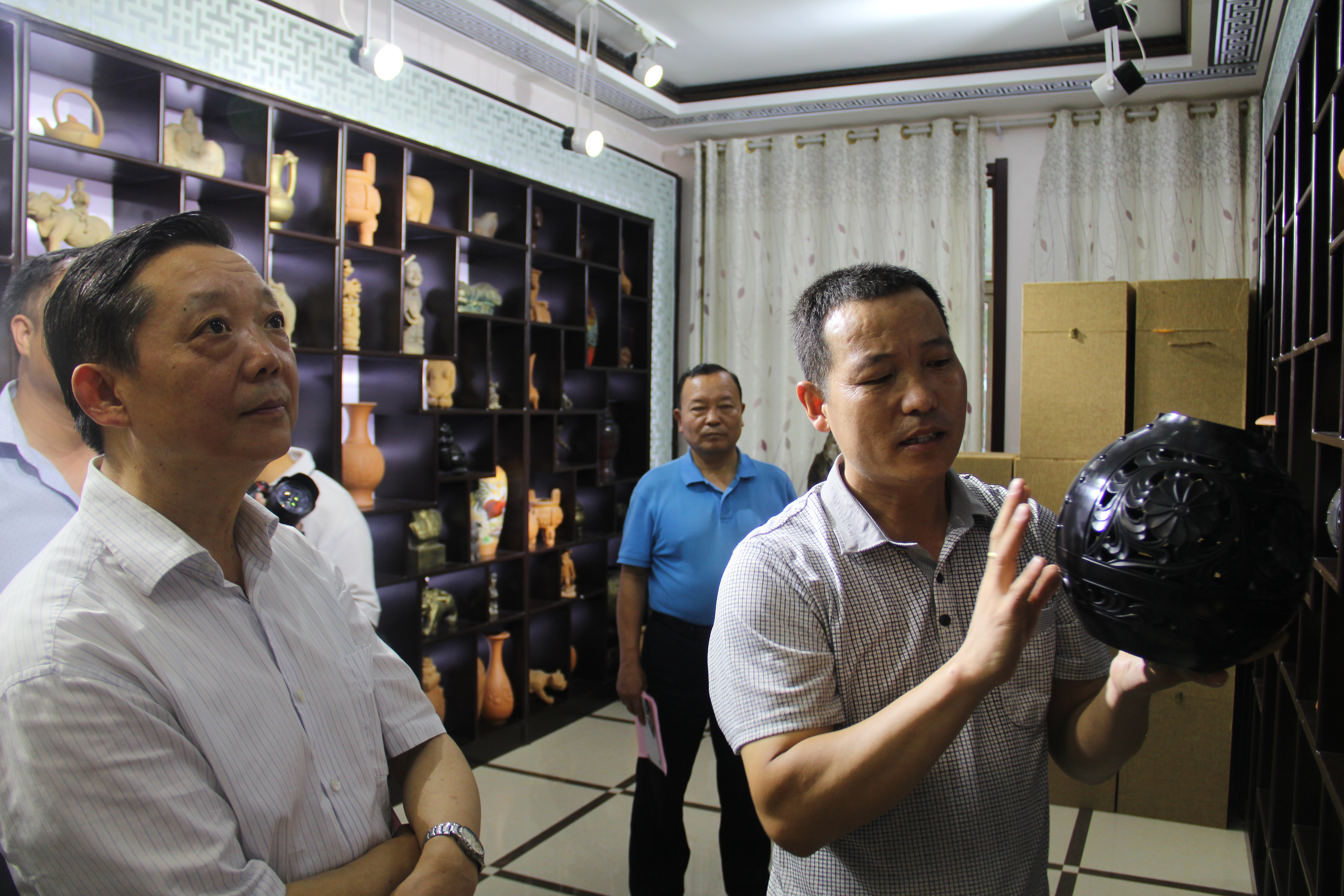 下午,張民忠副主任先后到棗莊市海峽兩岸交流示范點伏里土陶展館、臺資企業山東北鈦河陶瓷有限公司和臺兒莊古城寶島大道調研,親切看望了在棗臺商。(棗莊市臺辦)