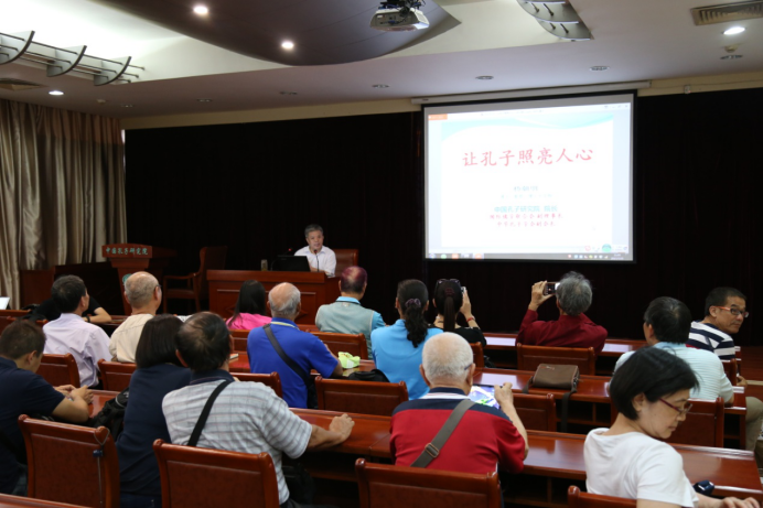 在孔子故里、東方圣城曲阜,著名儒學專家、孔子研究院院長楊朝明以“讓孔子照亮人心”為主題,給大家講述了“國無德不興,人無德不立”的道理,講座立論高遠、體例新穎,深入淺出,對《論語》有洞見的解讀,臺灣各位朋友聽得是如醉如癡,從歷史唯物主義的立場出發,感受孔子和儒家思想,感受祖國傳統文化的博大精深。參訪團隨后在濟寧市臺辦副調研員申云濤、曲阜市臺辦副主任徐猛陪同下,訪問了海峽兩岸交流基地--曲阜孔廟和孔府,加深了對孔子文化的了解。