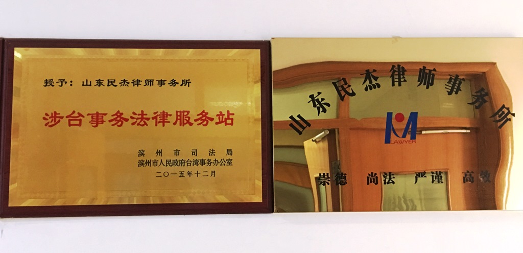 2015年, 濱州市臺(tái)辦聯(lián)合濱州市司法局出臺(tái)了《關(guān)于設(shè)立“濱州市涉臺(tái)事務(wù)法律服務(wù)站”的意見(jiàn)》,決定作為“法律服務(wù)站”的試點(diǎn),先期設(shè)立在山東民杰律師事務(wù)所,后續(xù)根據(jù)試點(diǎn)效果及服務(wù)需求大小,逐步在全市公、檢、法等各部門(mén)設(shè)立多個(gè)站點(diǎn)。該“法律服務(wù)站”通過(guò)向臺(tái)胞臺(tái)商臺(tái)企臺(tái)屬提供法律咨詢,開(kāi)展法律宣傳,擔(dān)任法律顧問(wèn),代理各類(lèi)案件,辦理涉臺(tái)公證,為臺(tái)資企業(yè)維權(quán)提供法律保障,幫助臺(tái)資企業(yè)建立經(jīng)營(yíng)風(fēng)險(xiǎn)預(yù)測(cè)預(yù)警機(jī)制,在促進(jìn)臺(tái)資企業(yè)健康快速發(fā)展,進(jìn)一步優(yōu)化對(duì)臺(tái)法律服務(wù)環(huán)境發(fā)揮了重要作用。