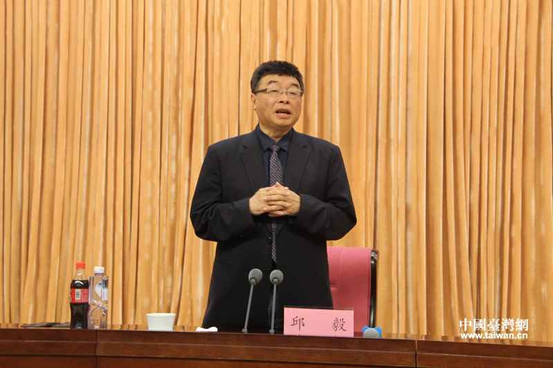 臺灣著名學(xué)者、臺灣中國文化大學(xué)國際企業(yè)管理研究所教授邱毅作專題報(bào)告(圖片來源:山東省臺港澳辦)