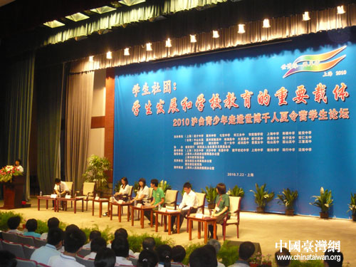 2010滬臺青少年走進(jìn)世博千人夏令營學(xué)生論壇在上海市進(jìn)才中學(xué)舉行。(上海市臺辦 鄧一飛 攝)