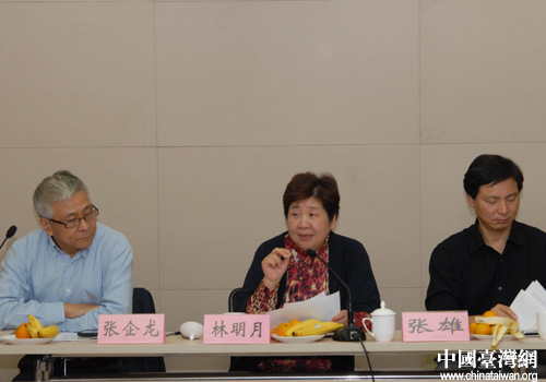 林明月在座談會上講話(上海市臺聯 王茜 攝)