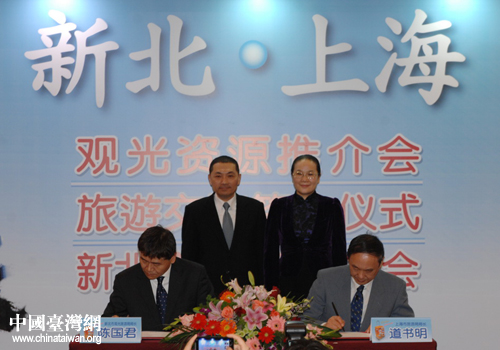 上海、新北兩市簽署旅游交流合作備忘錄。(上海市臺辦 葛鳳章 攝)