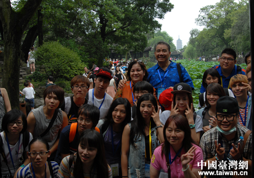 中國臺灣網7月8日蘇州消息 7月7日,臺灣中華兩岸少數民族知識經濟交流協會夏令營團走進蘇州,參觀江南名園——拙政園、千年古剎——寒山寺和吳中第一名勝——虎丘。盡管時值酷暑,戶外參觀實在是一件很辛苦的事情,但同學們還是興致盎然,談笑風生,手中的相機忙個不停。